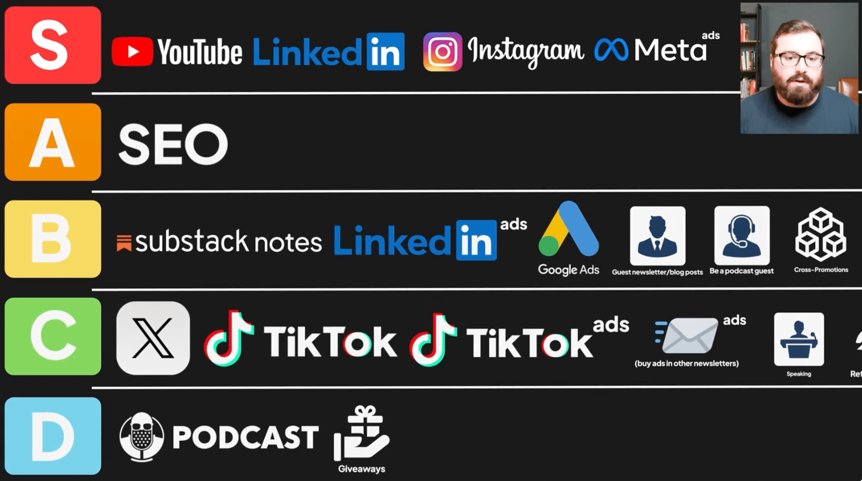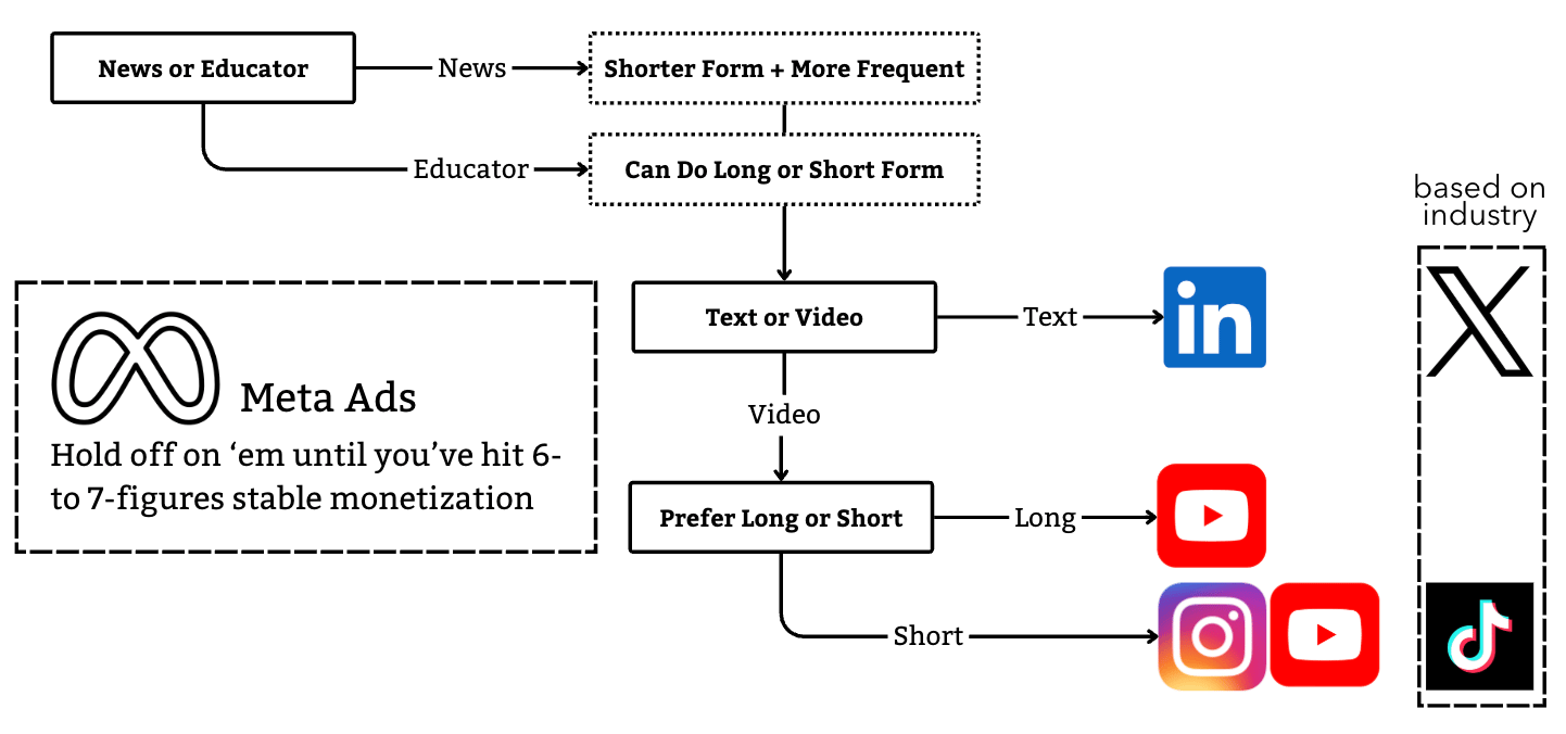 In the end, he says there are basically four primo channels (I will die before I use the term “s-tier,” but I digress): Youtube, LinkedIn, Instagram, and Meta.